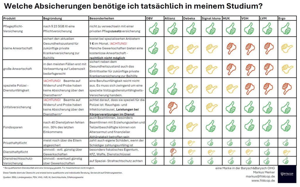 Unsere langjährige Erfahrung zeigt, das viele Menschen mit der Frage der nach den korrekten Versicherungen für Polizistinnen und Polizisten überfordert sind und sich Hilfe von Spezialisten wünschen. Transparent, ehrlich und verständlich. Das trifft auch auf viele Versicherungsvermittlungen zu.